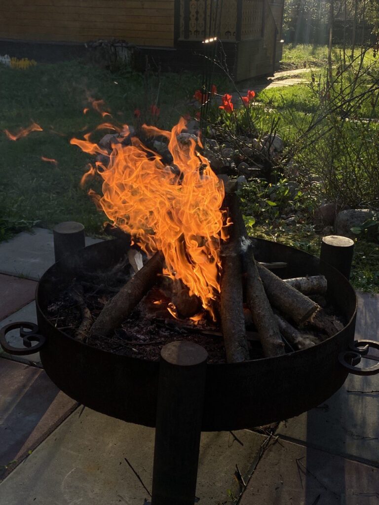 - В-пятых, огонь. У нас всегда на даче живой огонь. Просто ВСЕГДА. Осенью и весной костёр, и на нём готовим субботний ужин. Зимой веранда с панорамным видом и печка с огнем. 🔥 Кстати, летом мы на дачу не ездим, такая особенность, связанная с детьми — ездим к родителям на «дальную дачу», наша дорога совести.