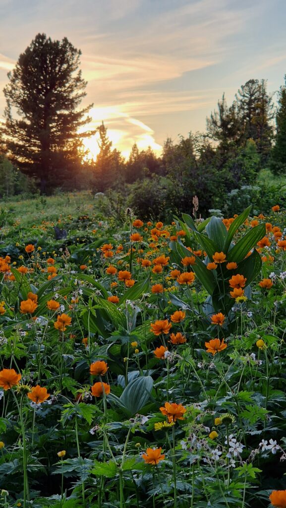 Для меня Алтай — это природа, цветы и деревья. Еще в первый раз я удивилась, что там в дикой природе растет абсолютно ВСЁ: лук, пионы, лилии, поля анютиных глазок, спирея, эхинацея, клевер, смородина, жимолость, кедры и лиственницы… Тысячи растений, запахов и все цвета радуги. Я вообще люблю растения, поэтому максимальное количество именно таких фото.