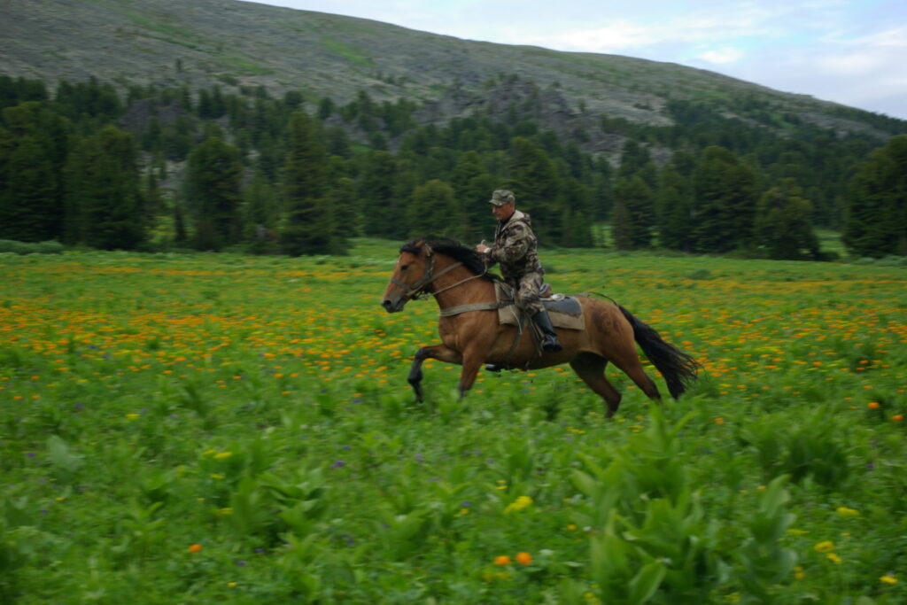 Для меня Алтай — это и дикие звери. Находясь в своих человеческих мыслях и заботах, мы их не видим и не замечаем. Но, на самом деле, они вокруг. Они смотрят на нас издалека и удивляются, а может раздражаются, а может просто пугаются. Если настроиться на волну природы и хотя бы попробовать, чуть-чуть попробовать стать ее частью, то начинаешь видеть. Тут прошел медведь, прямо по нашей тропе… или мы по его ))) Это след кабана или косули, не понятно… Ух ты, а это куропатка с цыплятами, чуть не попала под копыта коня. А это кедровки, устроили пир прямо над нами на кедраче. Так, а это бурундук напихивает себе за щеки сладкие цветы черники. Ой, заяц? маленький зайчик в наших руках. Вот это да! Невероятно.