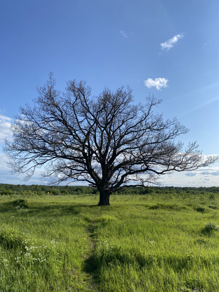 У меня есть дерево. Я его не сажала, но оно моё. На протяжении 14 лет я езжу мимо него и разговариваю с ним. Когда я подъезжаю к нему, мое сердце наполняется радостным ожиданием встречи, я жду этот поворот дороги, спуск, ещё немного в горку и вот оно — МОЁ ДЕРЕВО. Илья и дети так его теперь и называют «мамино дерево».