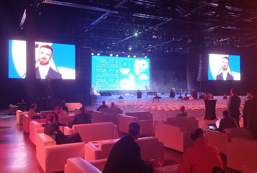 Изначально предполагал, что будет стандартная обстановка — доклады и между ними активности, чтобы не скучали участники, и после завершение. Но нет, когда зашел в помещение был, мягко сказать, удивлён. Это было безумно большое помещение, можно сравнить с концертной площадкой, где по центру оборудованы места для участников, а по краям зона стендов вендоров. И самым главным (как для участника) было то, что есть диваны! Это мега удобно и комфортно, иногда к концу дня одно место можно отсидеть просто! Сразу попробовал очень вкусный кофе и по итогу выпил аж 7 чашек =)