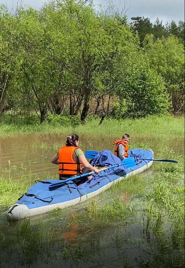 Первый раз пошли в такой поход с подружкой в 2020-м, присоединившись к сборной группе. Кстати, тот поход был очень запоминающимся. Стояла высокая вода после затяжных дождей и в тот год мы плыли в байдарках по полю… Такого в моей жизни больше не случалось ни до ни после. А еще в этом походе я увидела начало радуги, прямо в из-под куста на расстоянии 10 шагов от себя.