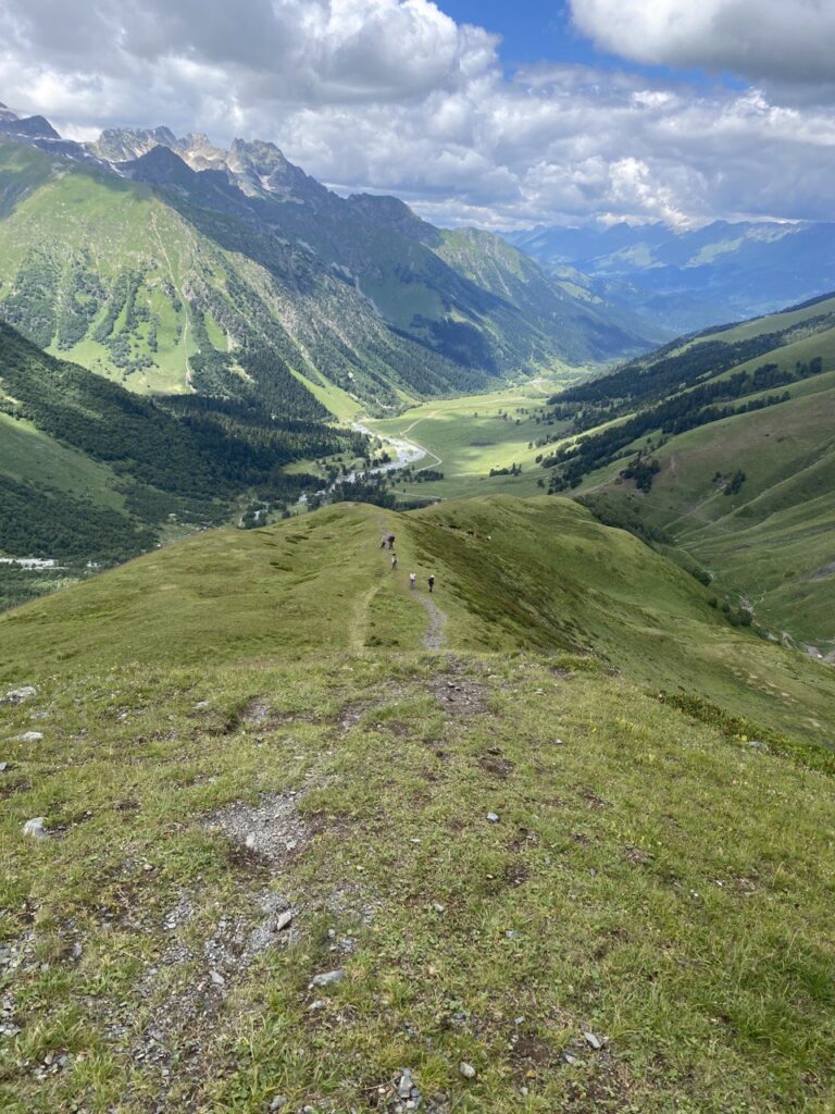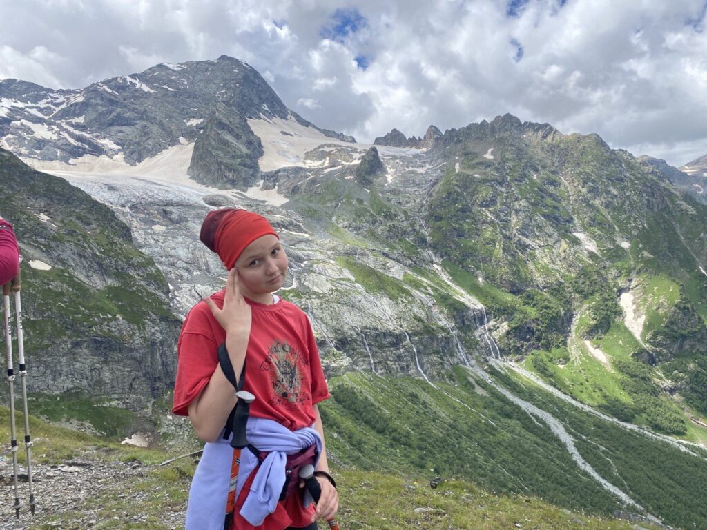 А вот Архыз вклинился, не соблюдает очередь, рвется вперёд. Идём, нет, ползём с Ариной наверх. Ей тяжело, мне её жаль. Идём под счет по 20 шагов, потом 10 отдых. Это моя плата за мою настойчивость.