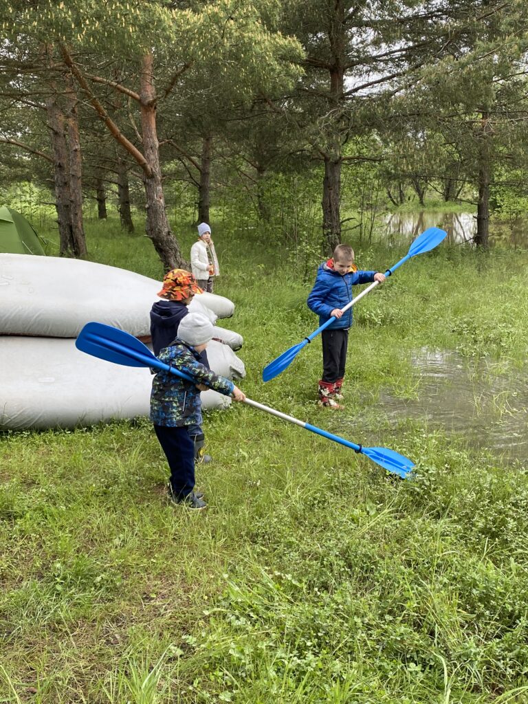А вот первый детский поход. На байдарках по полю??!! Аааа!! Разве так бывает? 😂Купание в луже в лесу, потому что лужа стала озером. Да, бывает, высокая вода, на 2-3 метра выше обычного. Радуга из под куста во время дождя, просто протянуть руку и вот она тут начинается.